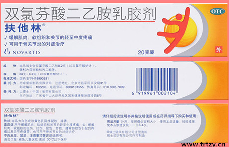 商品名称:双氯芬酸二乙胺乳胶剂(扶他林)